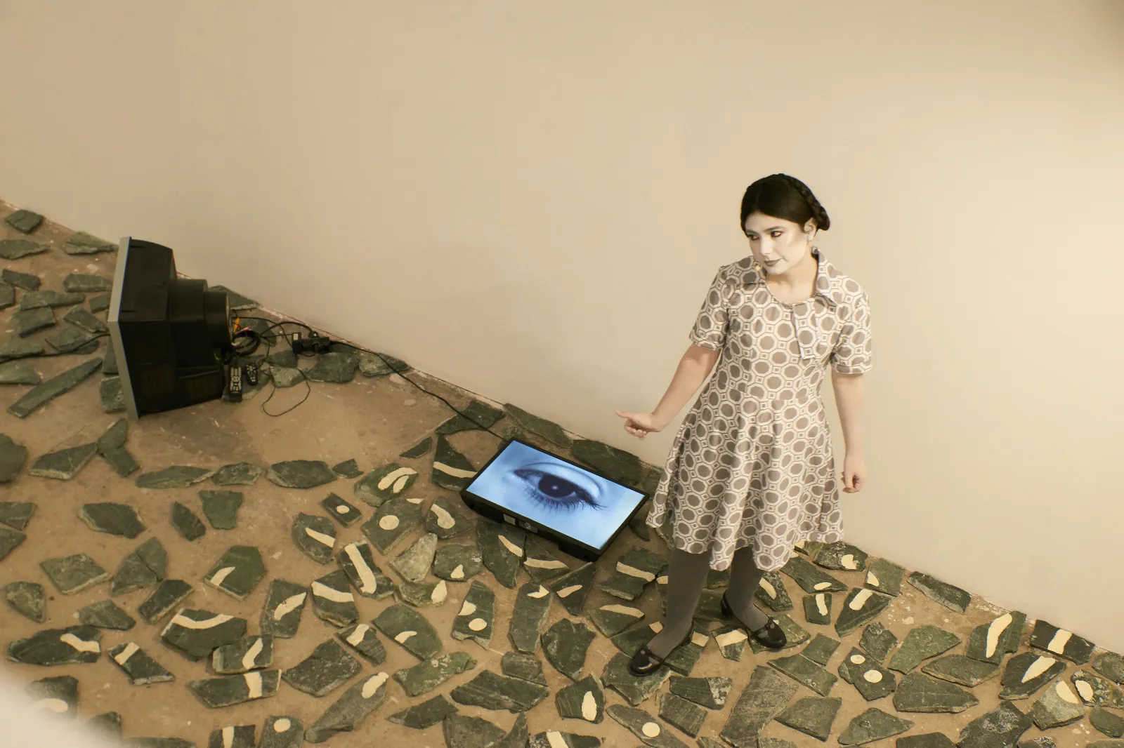 4.Adriana Chiruță, Tehnici de ieșire din ac pentru cei ce se cred fluturi, captură video; instalație performativă formată din video, sunet și 11 tehnici de micro-mișcare, 2021. Courtesy Adriana Chiruță